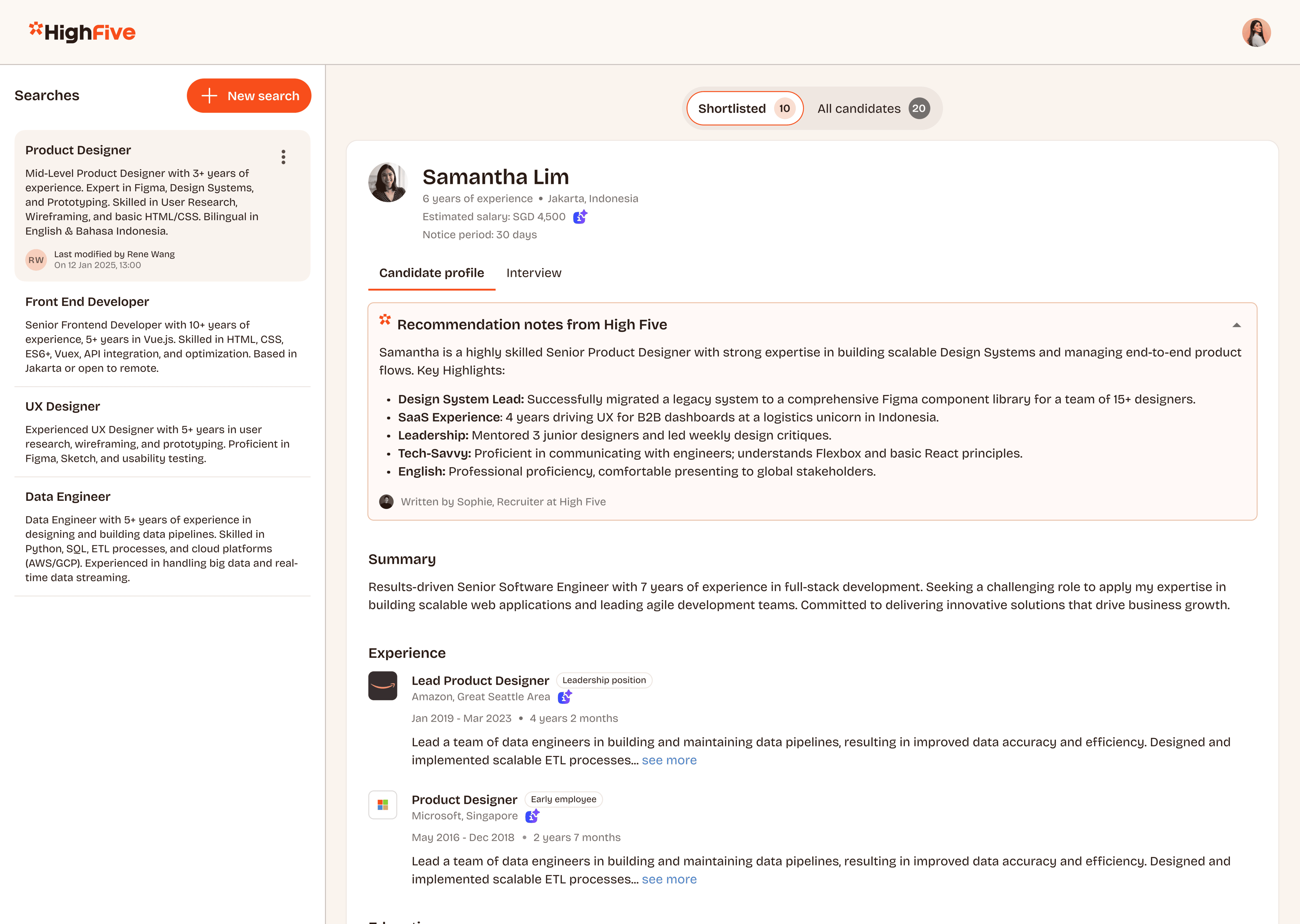 High Five is an AI-powered recruitment platform that helps companies hire top talent in Southeast Asia without paying agency or success fees. Operating on a flat monthly subscription, the platform combines autonomous AI agents with human expert review to source, screen, and deliver interview-ready candidates. High Five provides hiring infrastructure and Employer of Record (EOR) services across Indonesia, Vietnam, Malaysia, the Philippines, and Singapore, covering tech, product, and core business functions.